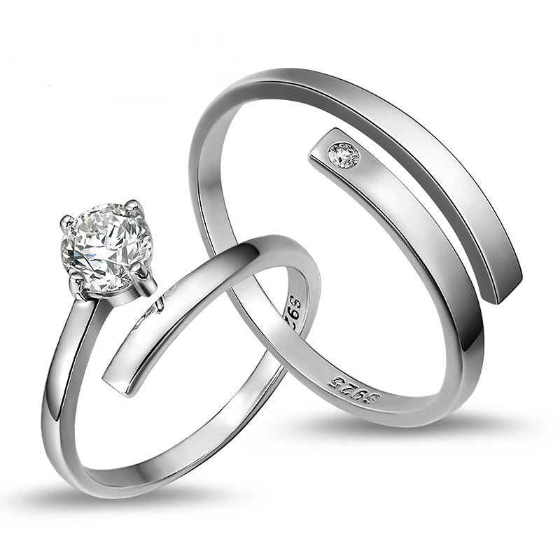Zircon Opening Silver Couple Ring