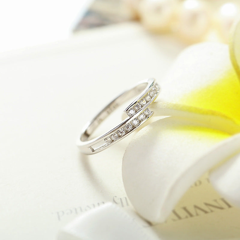 This stylish Zircon Silver Couple Ring features an eye-catching stripe pattern and one ring is decorated with small sparkly Zircons for a subtle elegant glamour. Whether layered together or on separate hands, this versatile ring is the ideal accent to complete your look.