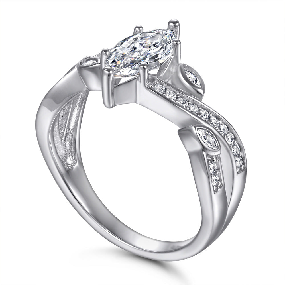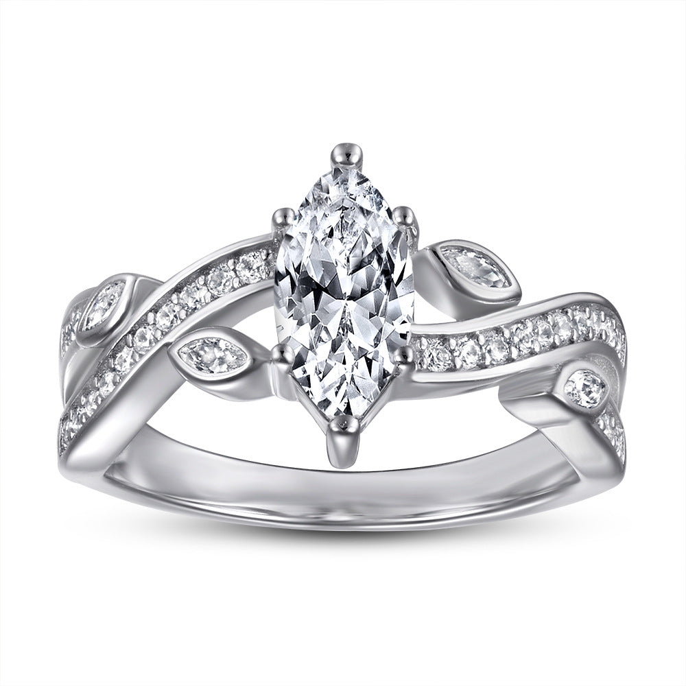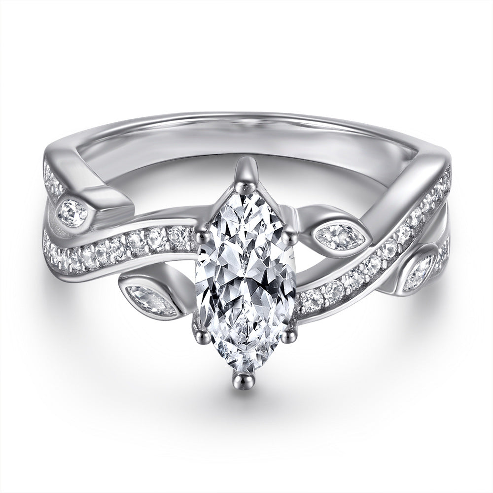 Elegantly crafted with a hollow pattern arm made of sterling silver, this Marquise Zircon ring for women is a classic accessory. The marquise zircon stone adds a subtle touch of sparkle and sophistication to the design, making it a timeless piece.
