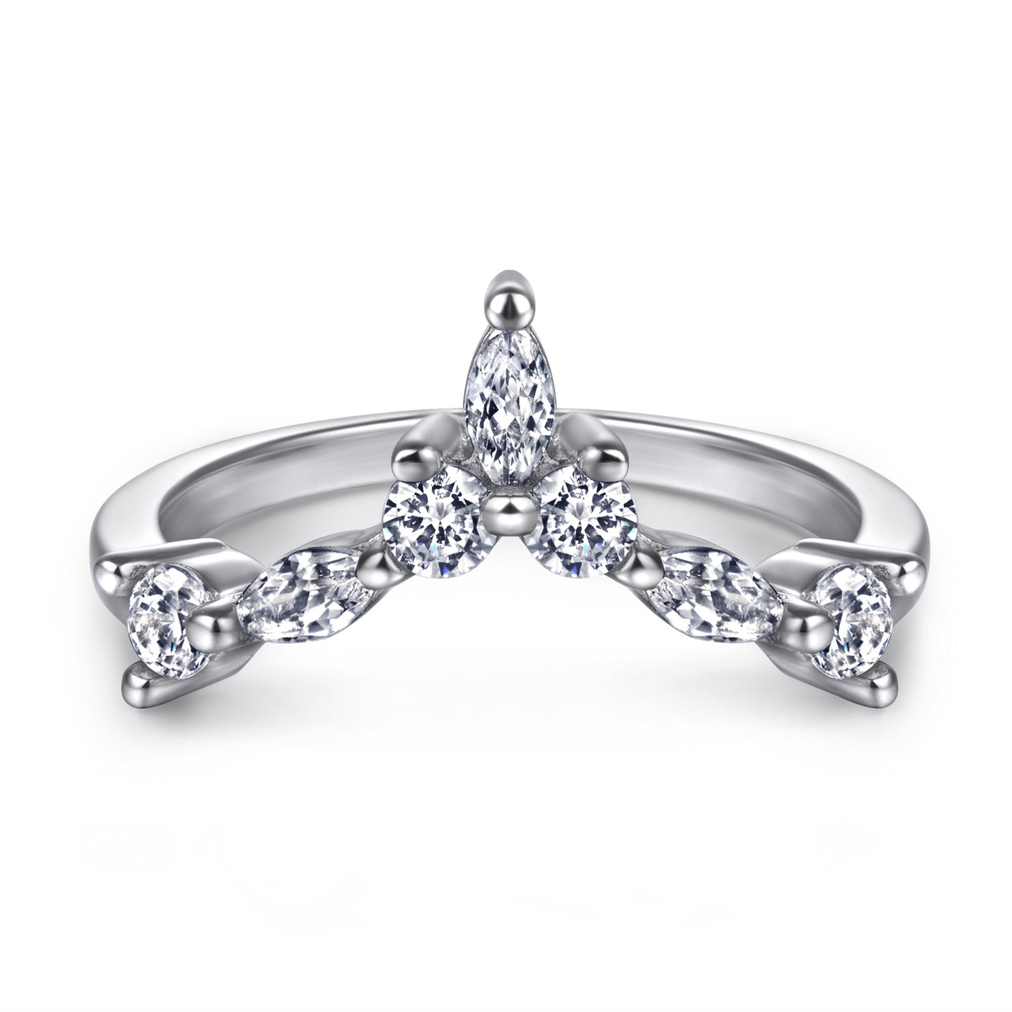This classic V-shaped silver ring for women features an elegant combination of Marquise and Round Zircon for timeless beauty. Crafted from sterling silver, this piece is perfect for any occasion.