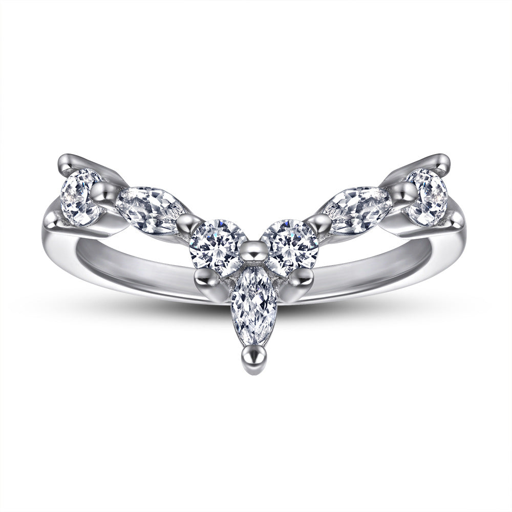 Marquise and Round Zircon V-shaped Silver Ring for Women