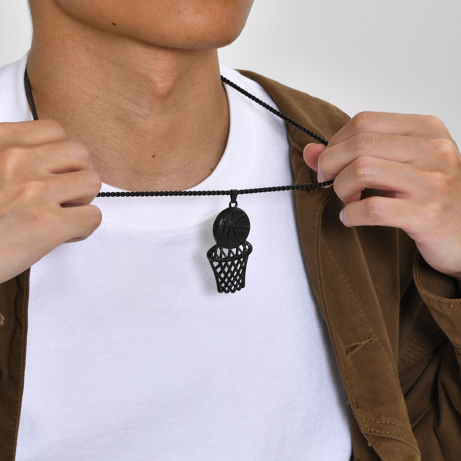Men's Accessories Stainless Steel Basketball Frame Pendant Necklace