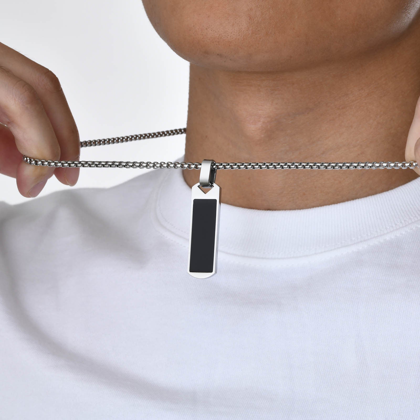 Discover the ultimate statement piece for any modern man with our Men's fashion stainless steel all-light lapis lazuli agate drop glue rectangular strip pendant steel for men. This stunning pendant is not just a piece of jewelry; it's a reflection of style and sophistication. Crafted from premium stainless steel, it promises durability while offering a sleek, polished finish that catches the eye and complements any outfit.