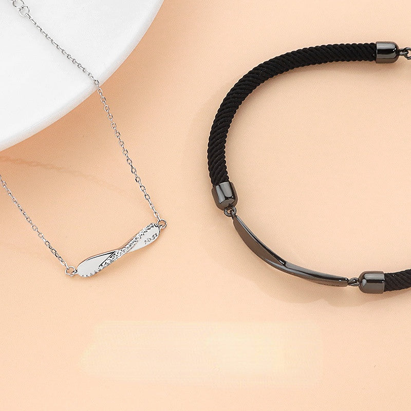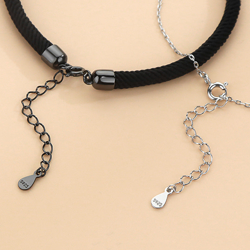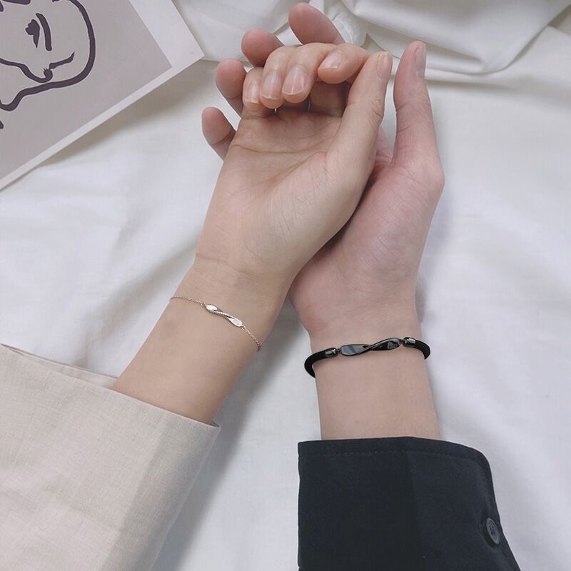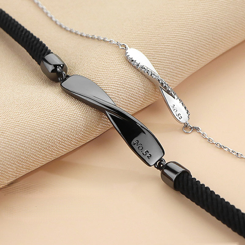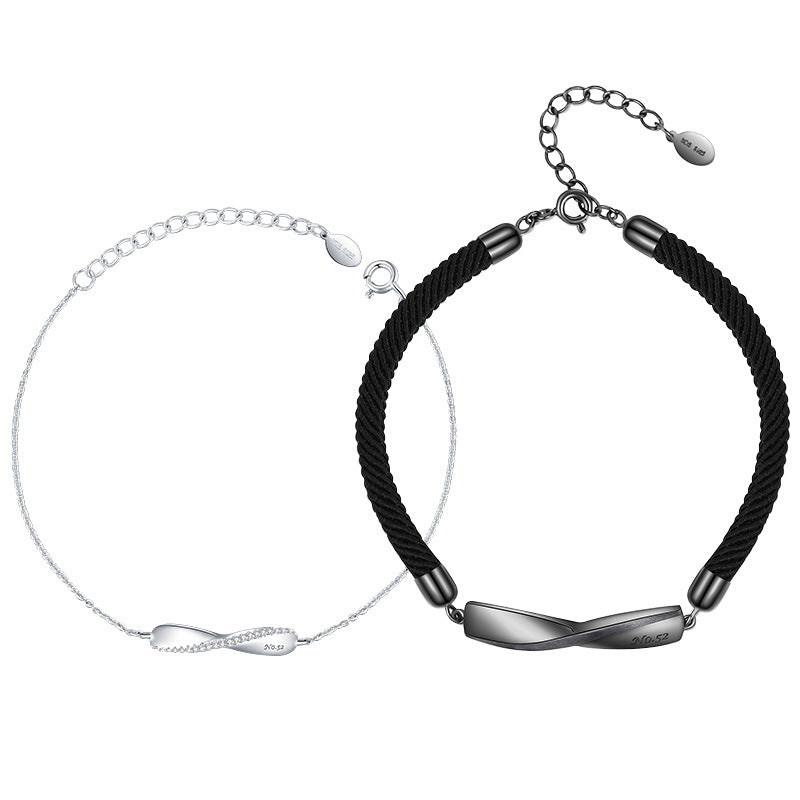 Accessorize your love with a Mobius Design Silver Couple Bracelet for Women. This elegant bracelet features an Mobius design crafted from either a black rope or a sterling silver chain. Its tasteful and exclusive stylings make it the perfect expression of your undying affection.