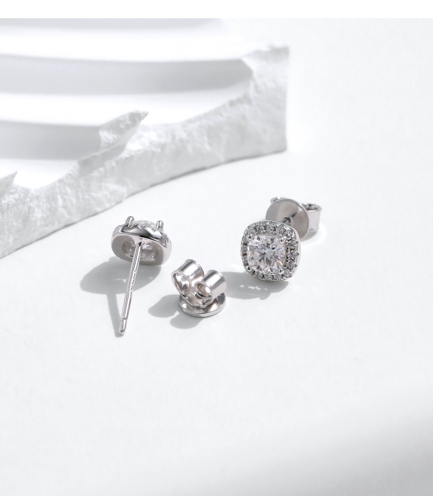 • Brilliant Moissanite: Each earring is adorned with D/VVS Moissanite, renowned for its dazzling sparkle and clarity, ensuring you stand out at any occasion.