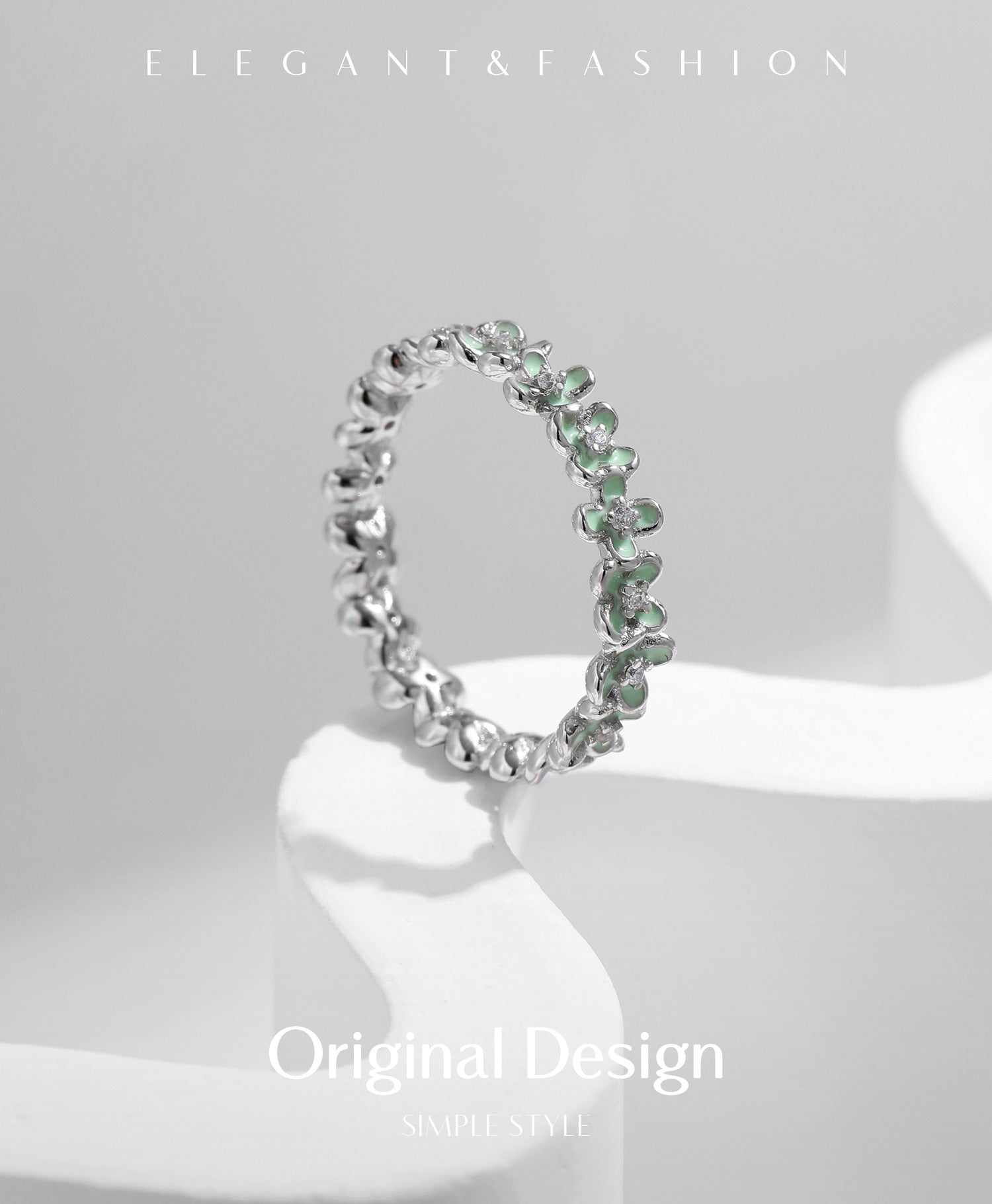 • Stunning Zircon Accents: The ring is adorned with beautiful mint green Zircon stones that add a pop of color and sparkle.