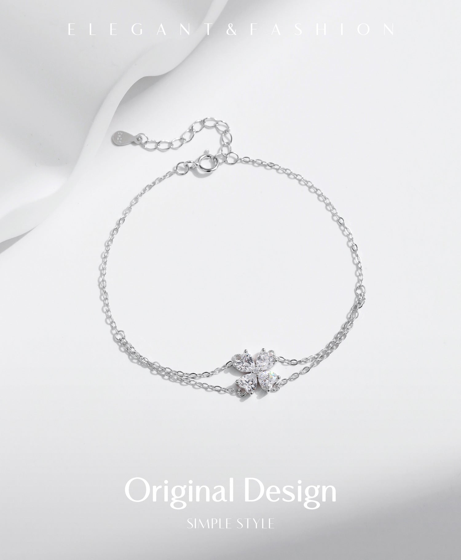 s925 Sterling Silver Four-Leaf Clover Double-Layer Bracelet by Planderful delivers a touch of elegance and charm for everyday wear. This exquisite love heart jewelry piece is designed to enhance your style while offering a sense of luck and prosperity.