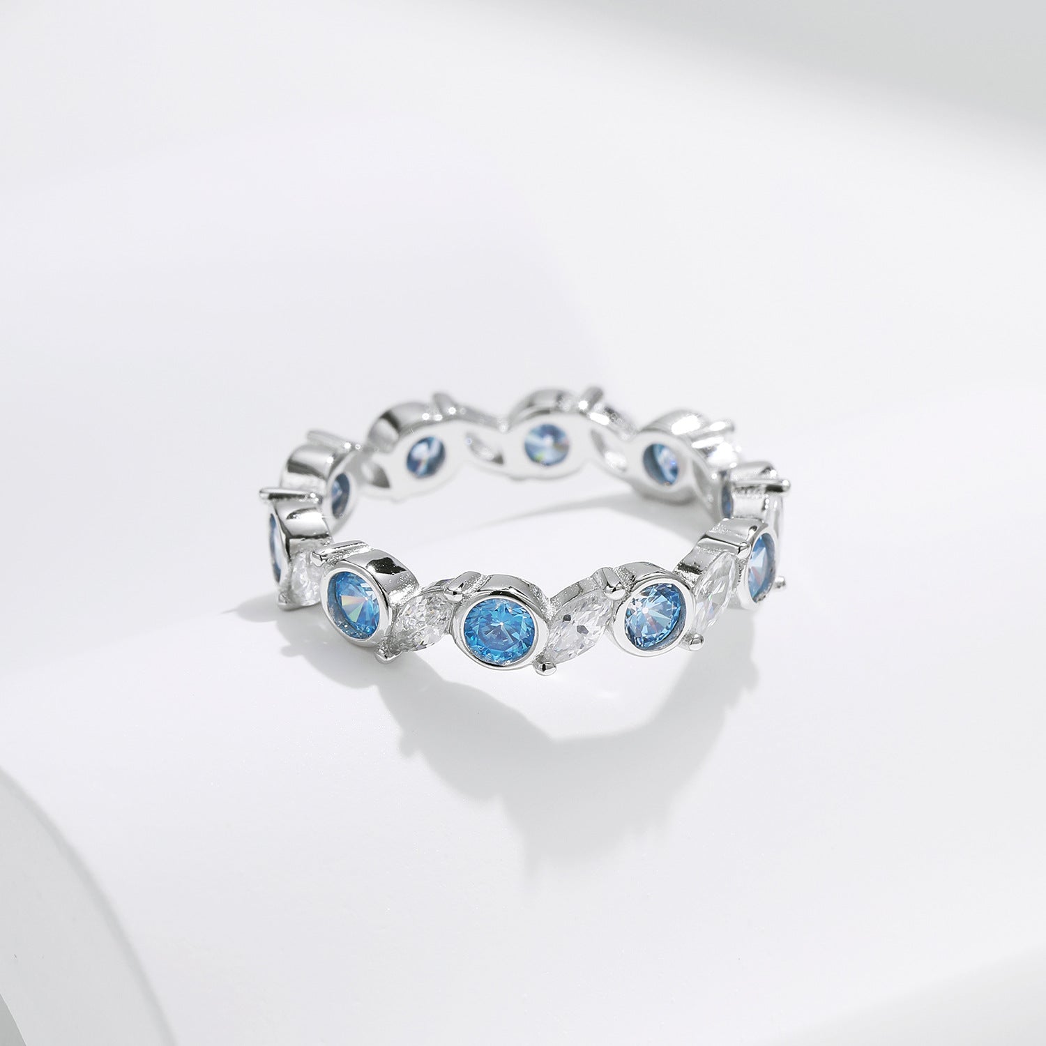 • Stunning Zircon Accents: Adorned with exquisite zircon gemstones, the imitation sea blue treasure row design adds a sophisticated pop of color.