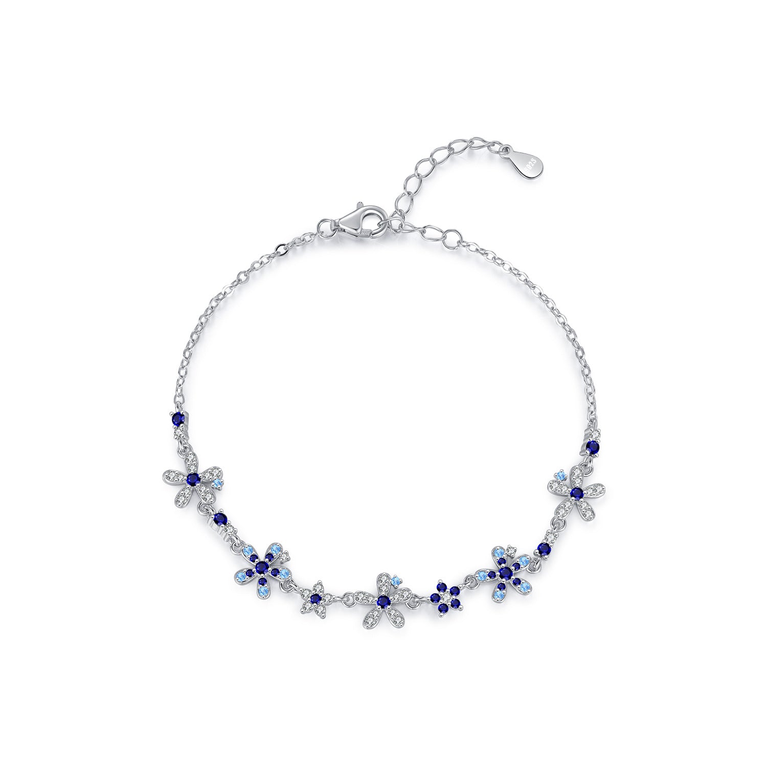 s925 Sterling Silver Light Luxury Exquisite Super Flash Zircon Gradual Change Color Design Blue Flower Bracelet by Planderful delivers a stunning elegance that enhances any outfit for girls and young women looking to shine at special occasions or daily wear.