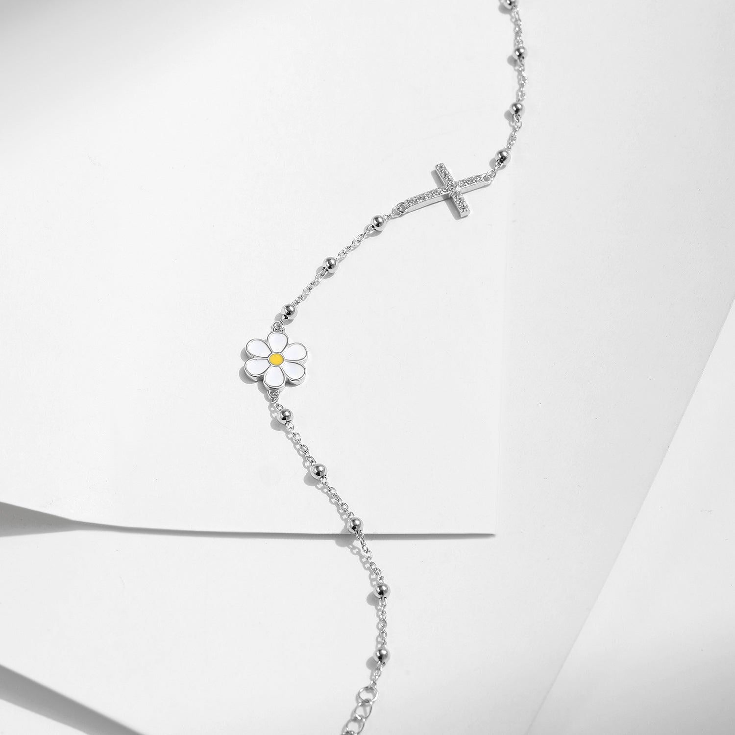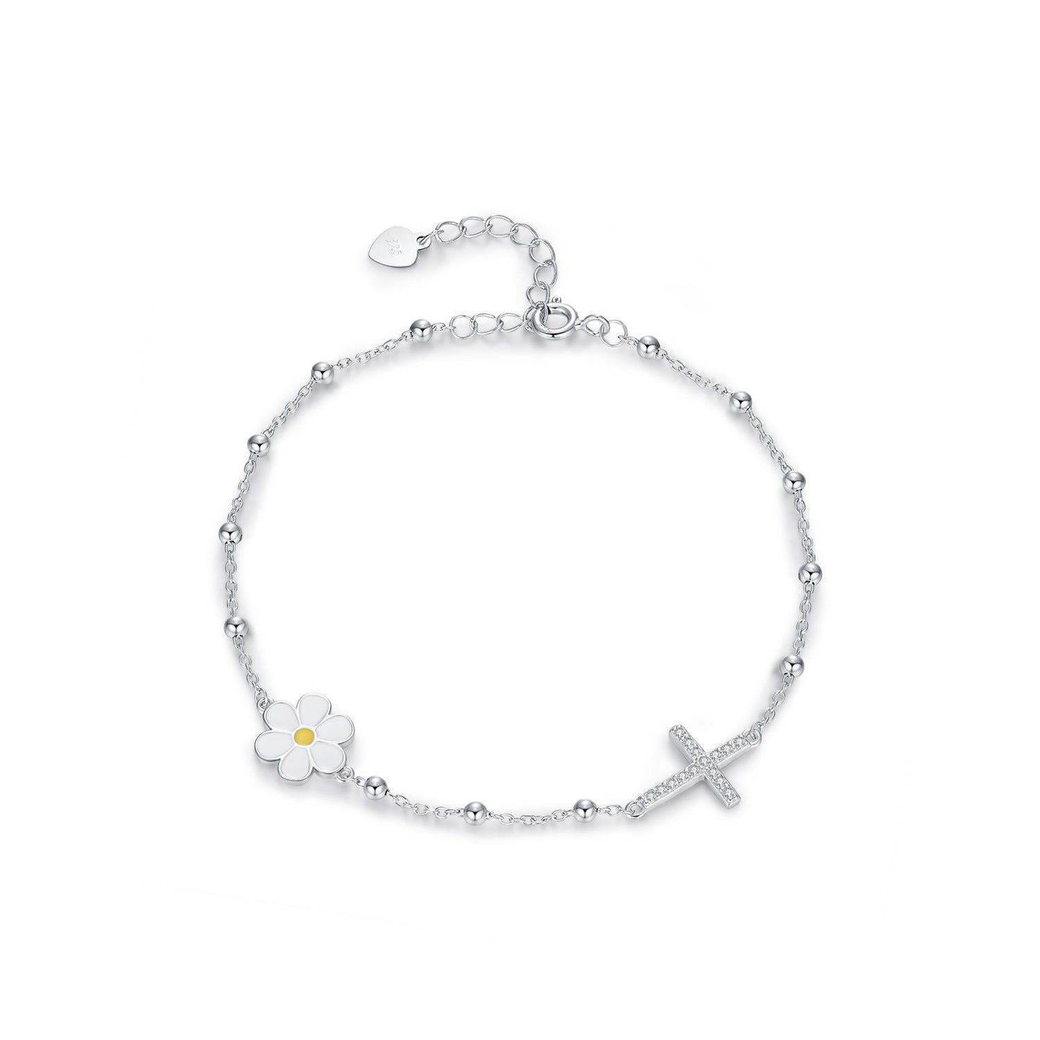 s925 Sterling Silver Small Fresh High Sense Niche Daisy Full Zircon Cross Light Bead Bracelet by Planderful delivers an exquisite touch of elegance for any occasion. This stunning bracelet is designed for women who appreciate both style and quality, making it the perfect accessory for everyday wear or special events.