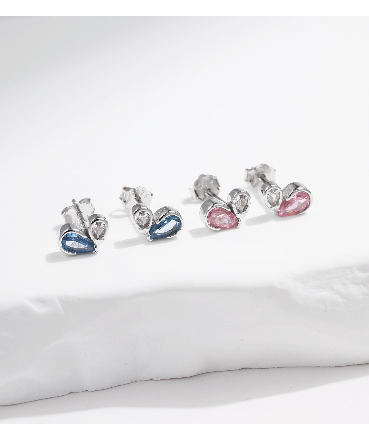 S925 Sterling Silver Multi-color Zircon Drop Ring Women's Japan and Korea Small Fresh Versatile Mini Earrings Ring set by Planderful delivers a stunning blend of elegance and versatility for any occasion.