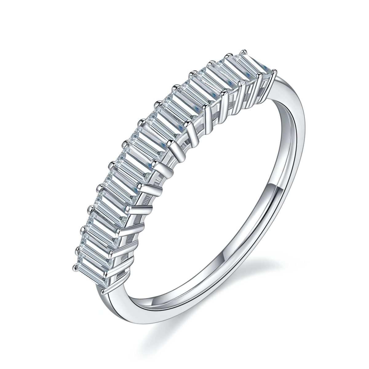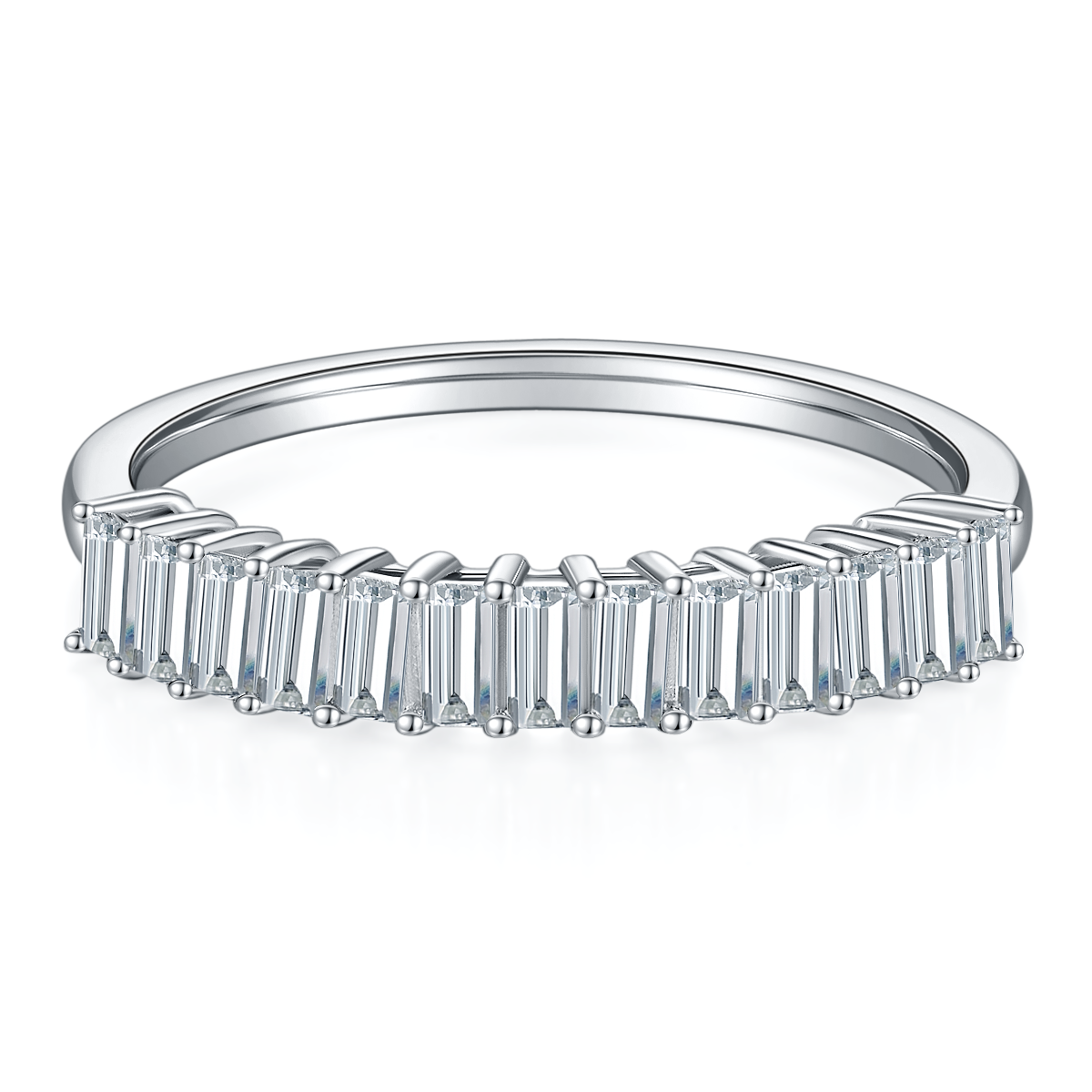 Baguette Cut Moissanite Half Eternity Silver Ring
