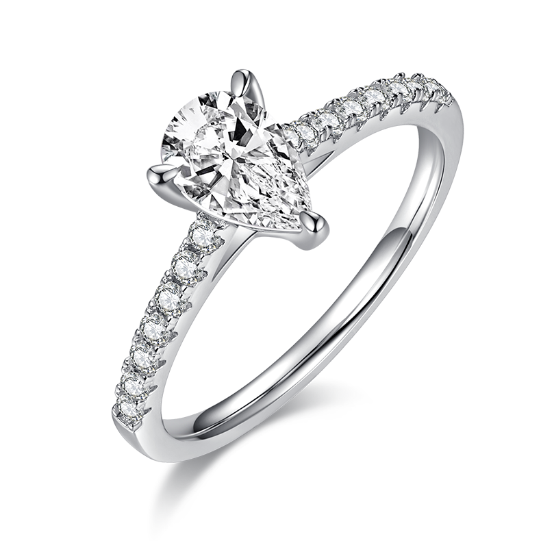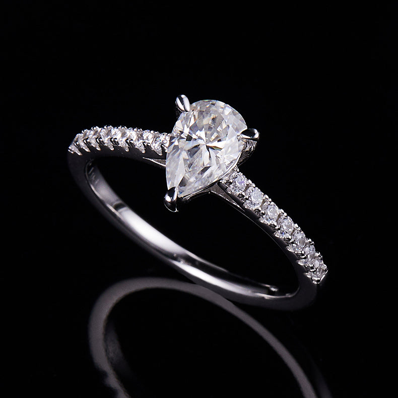 This exquisite ring features a classical water drop shape Moissanite and is set with Moissanite on the ring band to make the entire ring more sparkly. In addition, the three-prongs design makes the Moissanite stone more prominent. This ring has long-lasting luster and is not easy to oxidize or wear-resistant. It’s also not easy to cause allergies.This ring is the preferred gift for birthdays, anniversaries or Valentine’s Day.