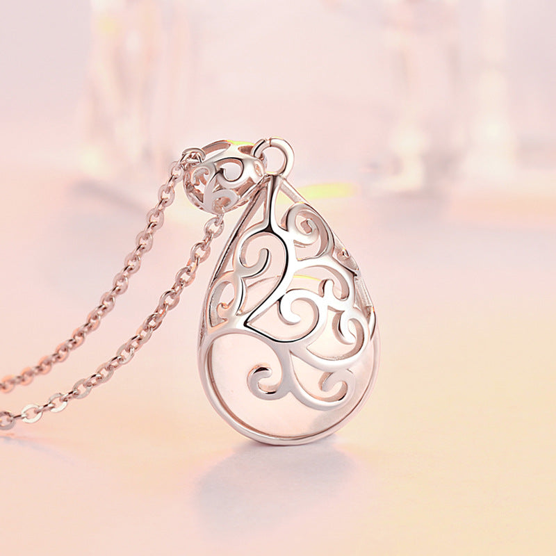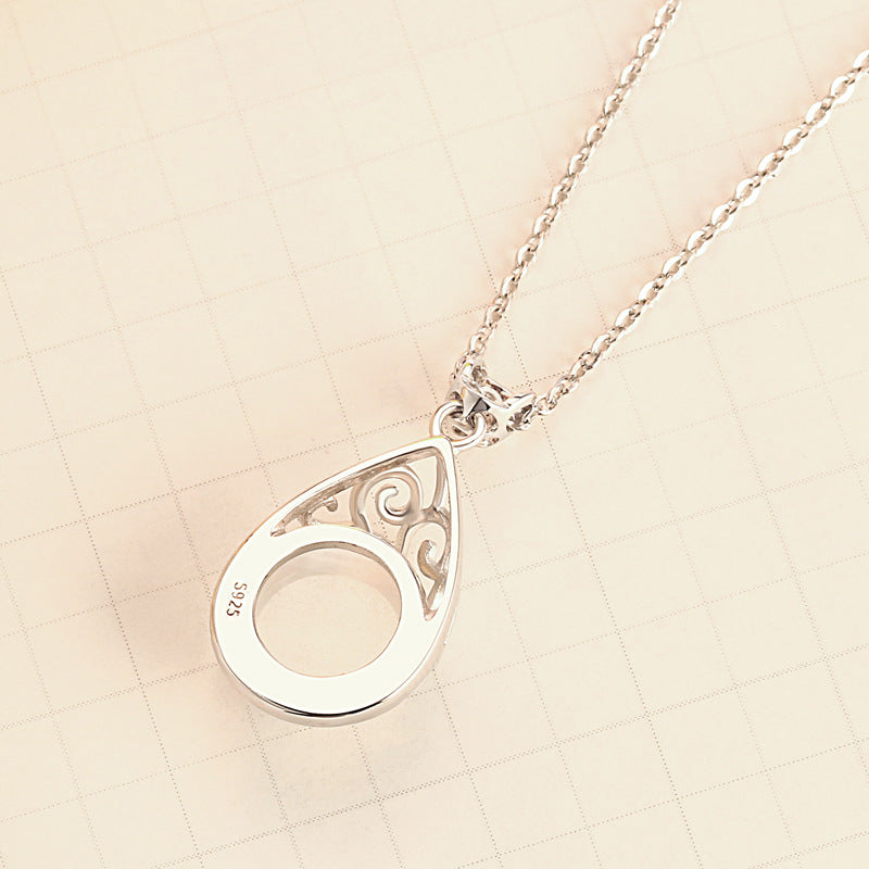 Moonstone Hollow Pear Drop Pendant Silver Necklace for Women