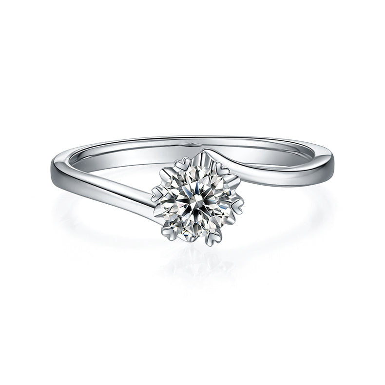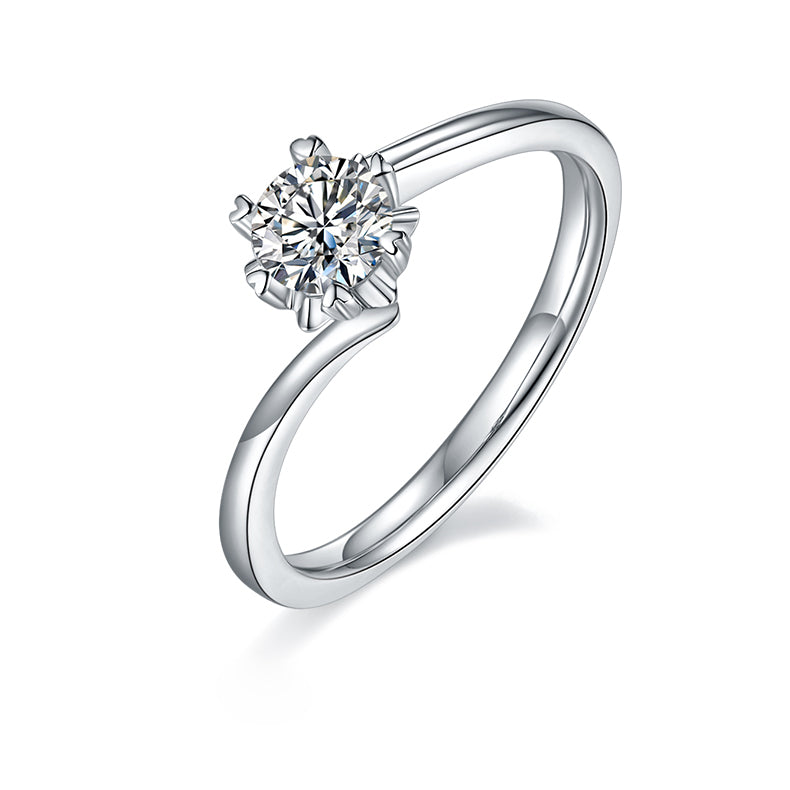 6 Prongs 0.5 Carat Round Cut Moissanite Twist Arm Engagement Ring