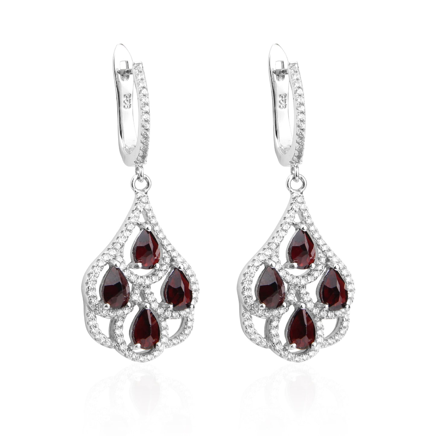 Natural Garnet Luxury Pear Drop Silver Drop Earrings for Women