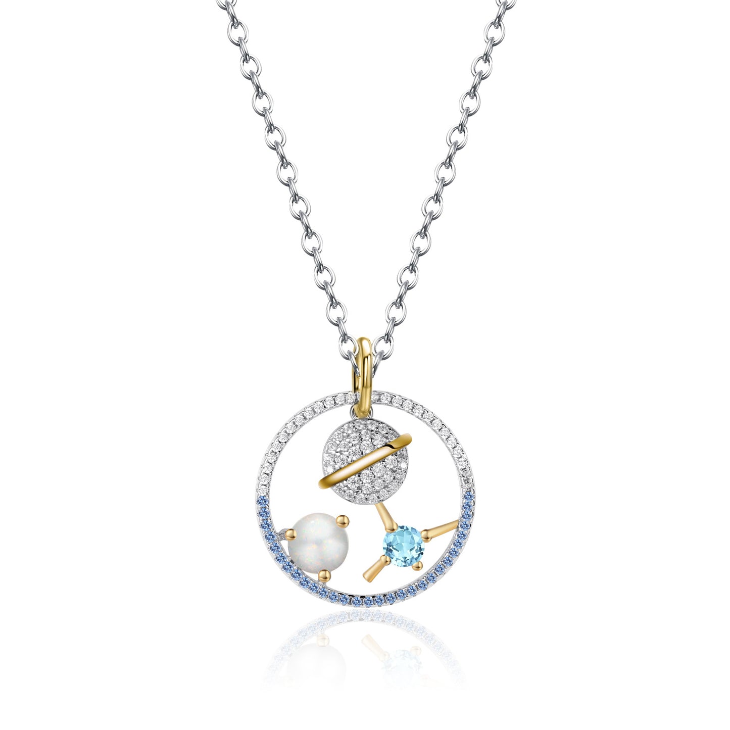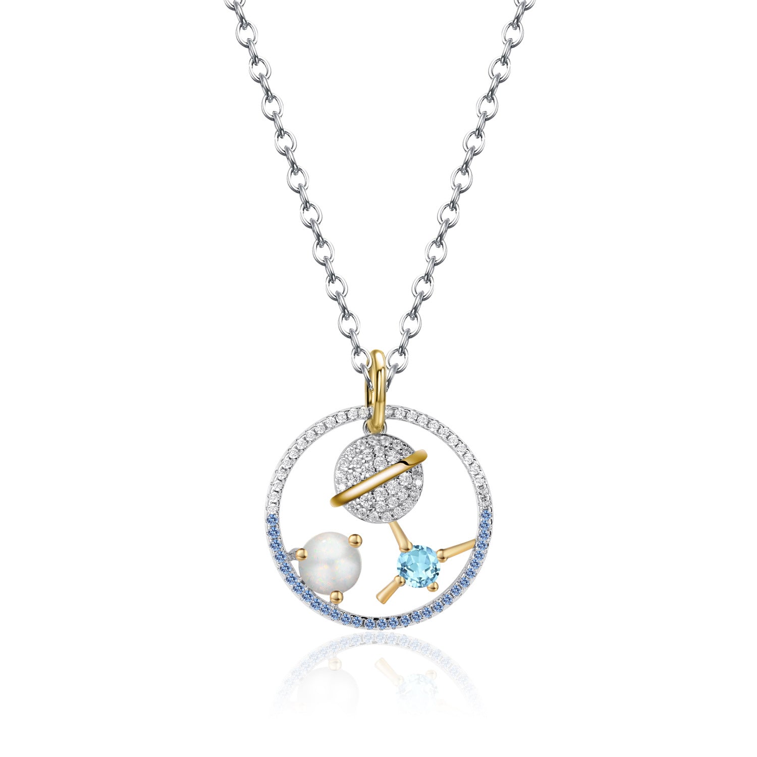 A timeless pendant necklace for the modern woman, this necklace features a hollow circle pendant with zircon planet and star pattern inlaid with natural colourful gemstones. Crafted from sterling silver, this piece offers an effortless look with eye-catching detail and exquisite quality.