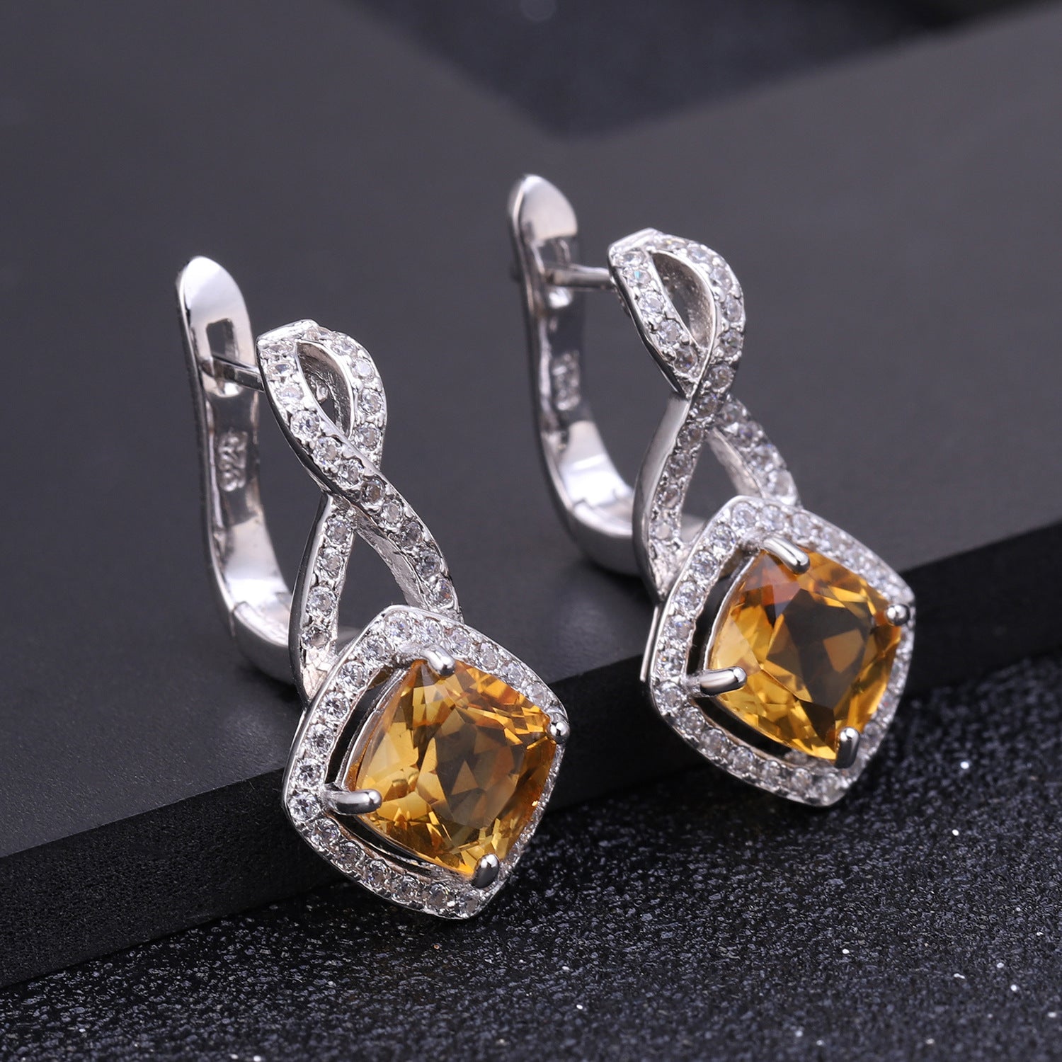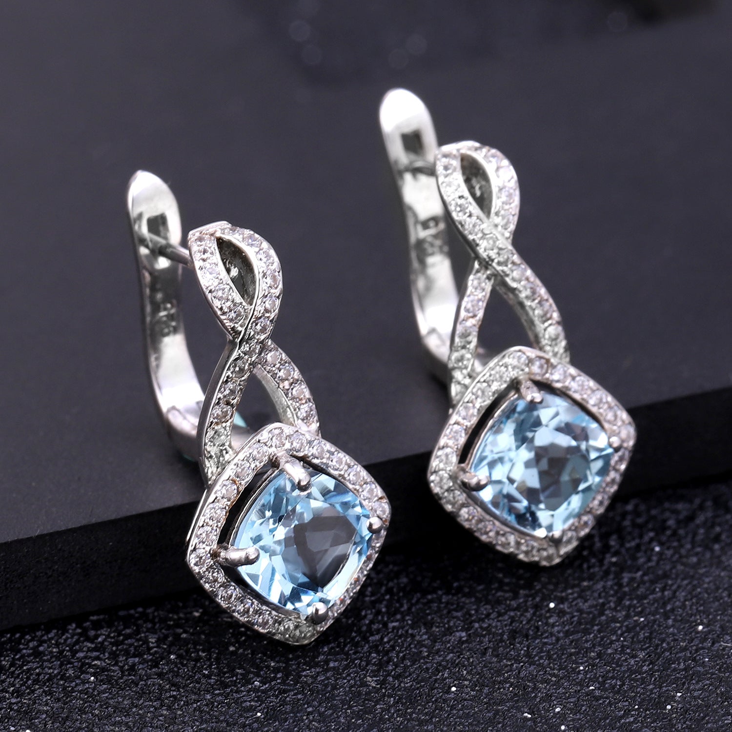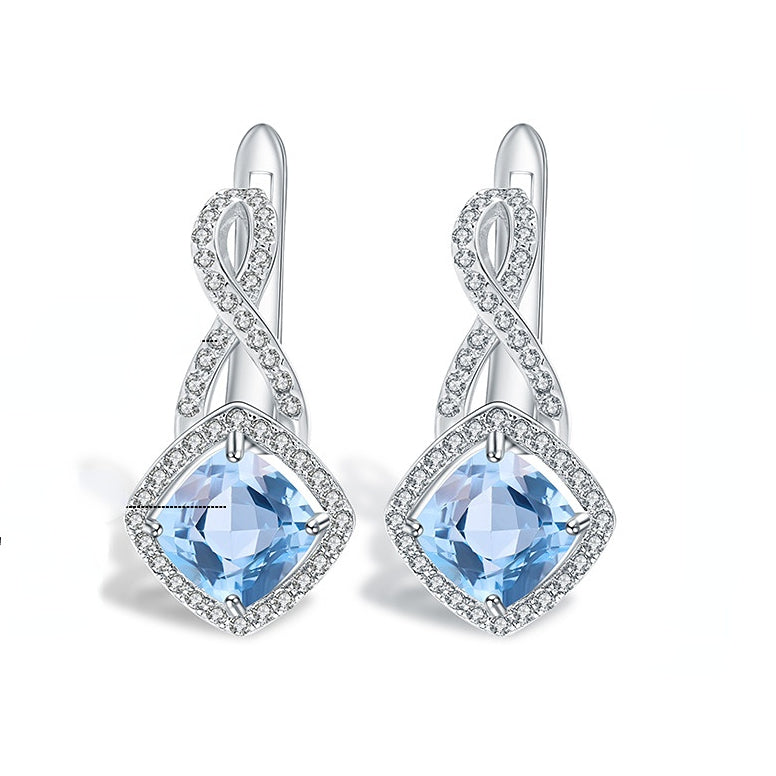 European Colourful Gemstone Soleste Halo Square Silver Studs for Women