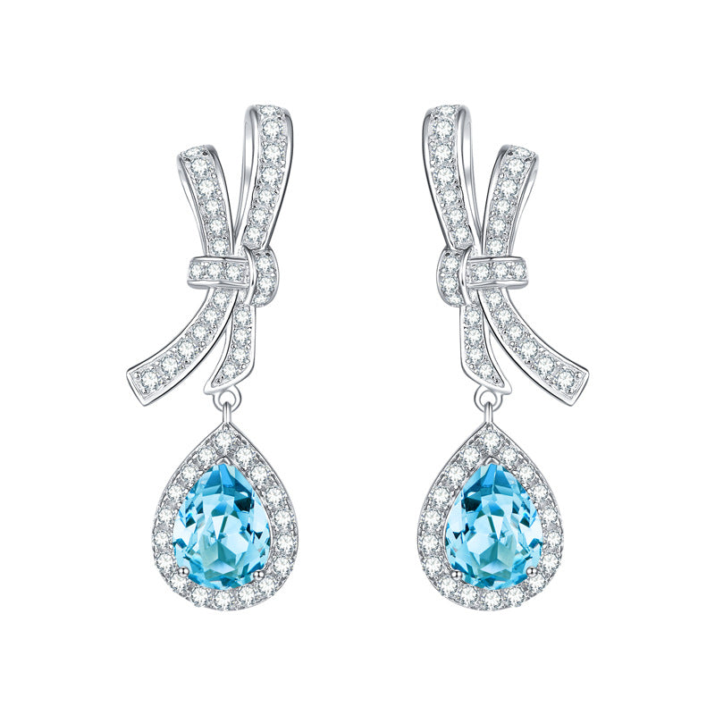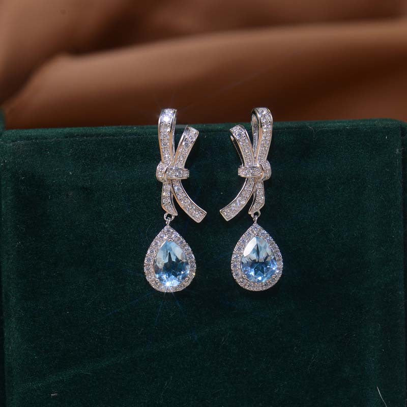 Sky Blue Natural Topaz 6*8mm - Platinum Plated - Drop Silver Earring for Women