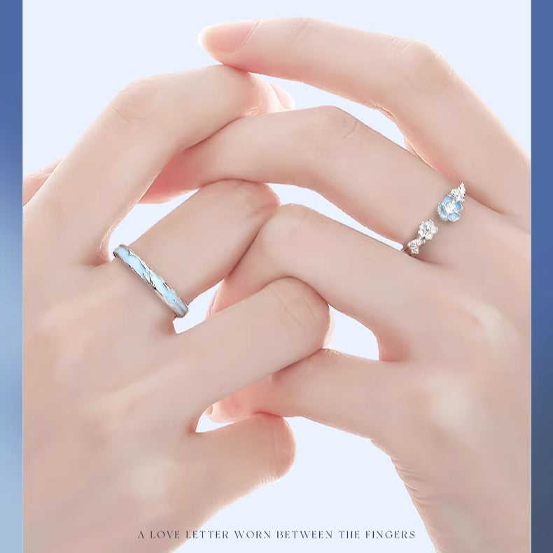 Planderful 925 Sterling Silver Heart Camellia Couple Ring For Couples Unisex Adjustable Elegant Gift For Men And Women