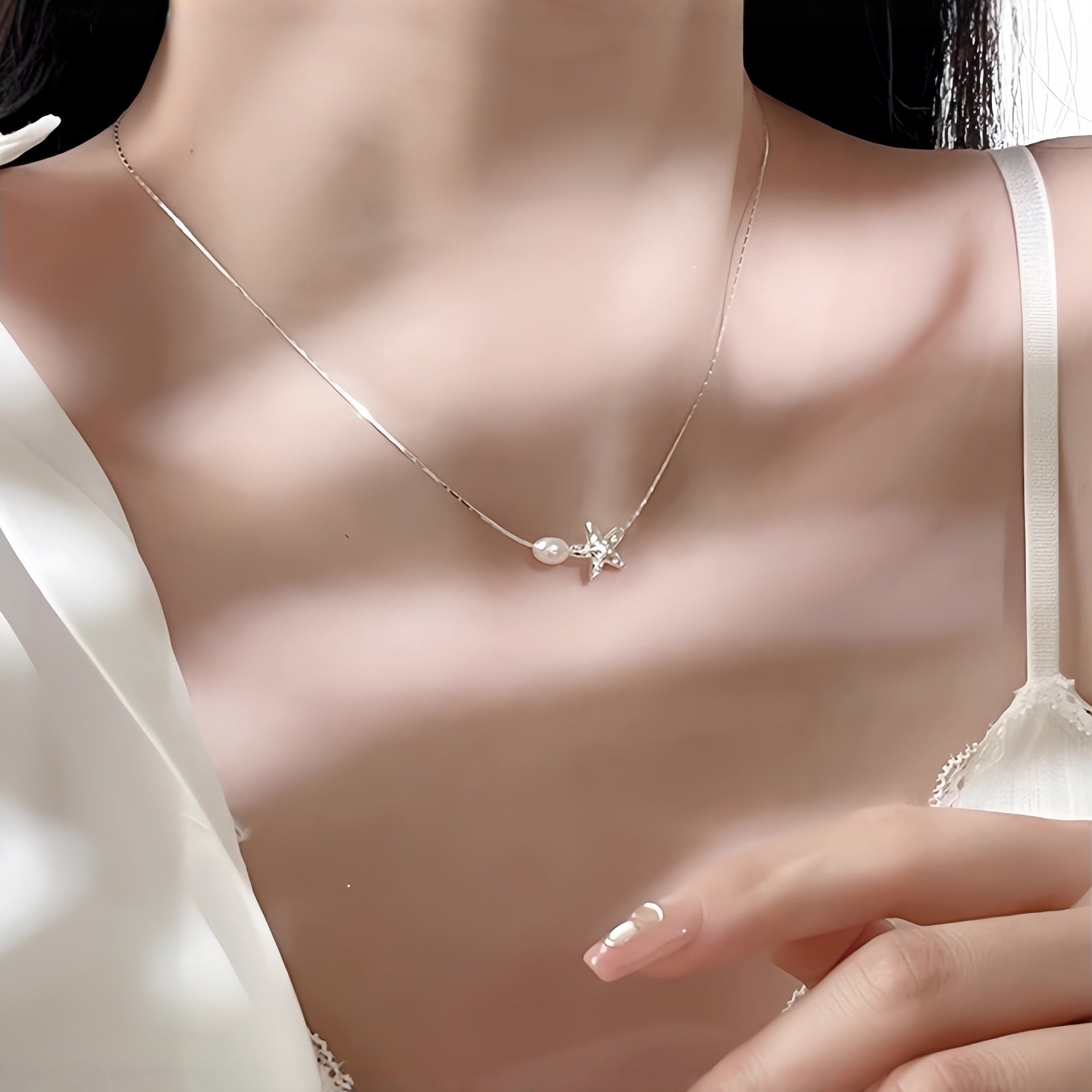 Planderful Sterling Silver Starfish Necklace With Freshwater Pearl Pendant For Girls Delicate Everyday Jewelry