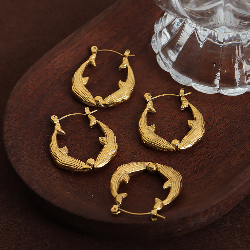 Experience Exquisite Elegance with Our Dolphin Titanium Necklace Earrings