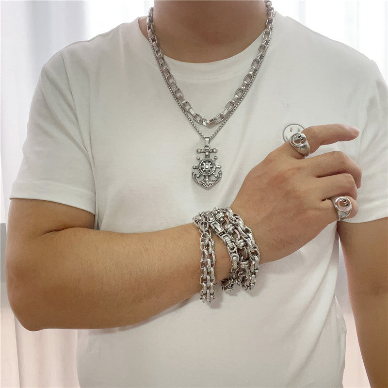 Personalized Retro Titanium Steel Rudder Necklace for Men - Trendy Anchor Pendant