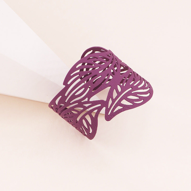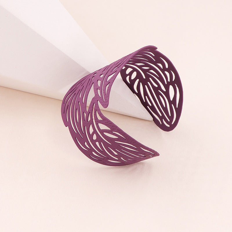 Indulge in elegance and style with this unique Metal Texture Lacquer Leaf Opening Bracelet. Its intricate design and high-quality metal material make it a must-have accessory for those who appreciate fine jewelry. Whether you're attending a special event or adding flair to your everyday look, this bracelet will elevate your style effortlessly. Embrace luxury and individuality with this exquisite piece from Planderful's Vienna Verve collection.