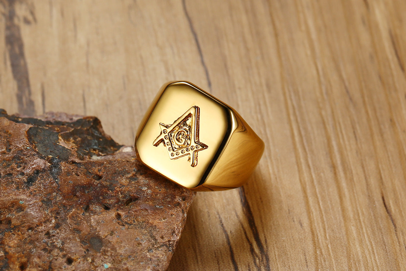 Introducing our new product launch: the stunning stainless steel Freemason casting ring. This fashionable gold ring embodies the spirit of brotherhood and elegance, making it the perfect addition to any man's jewelry collection. Designed for those who appreciate quality and style, this trendy men's head jewelry wholesale for men is not just an accessory; it’s a statement piece that showcases your unique personality.