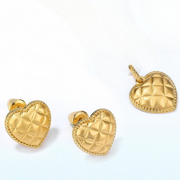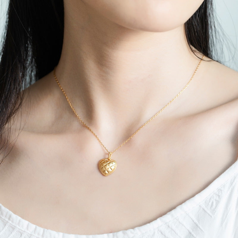 Geometric Rhombus Pattern Heart Shape Sterling Silver Pendant