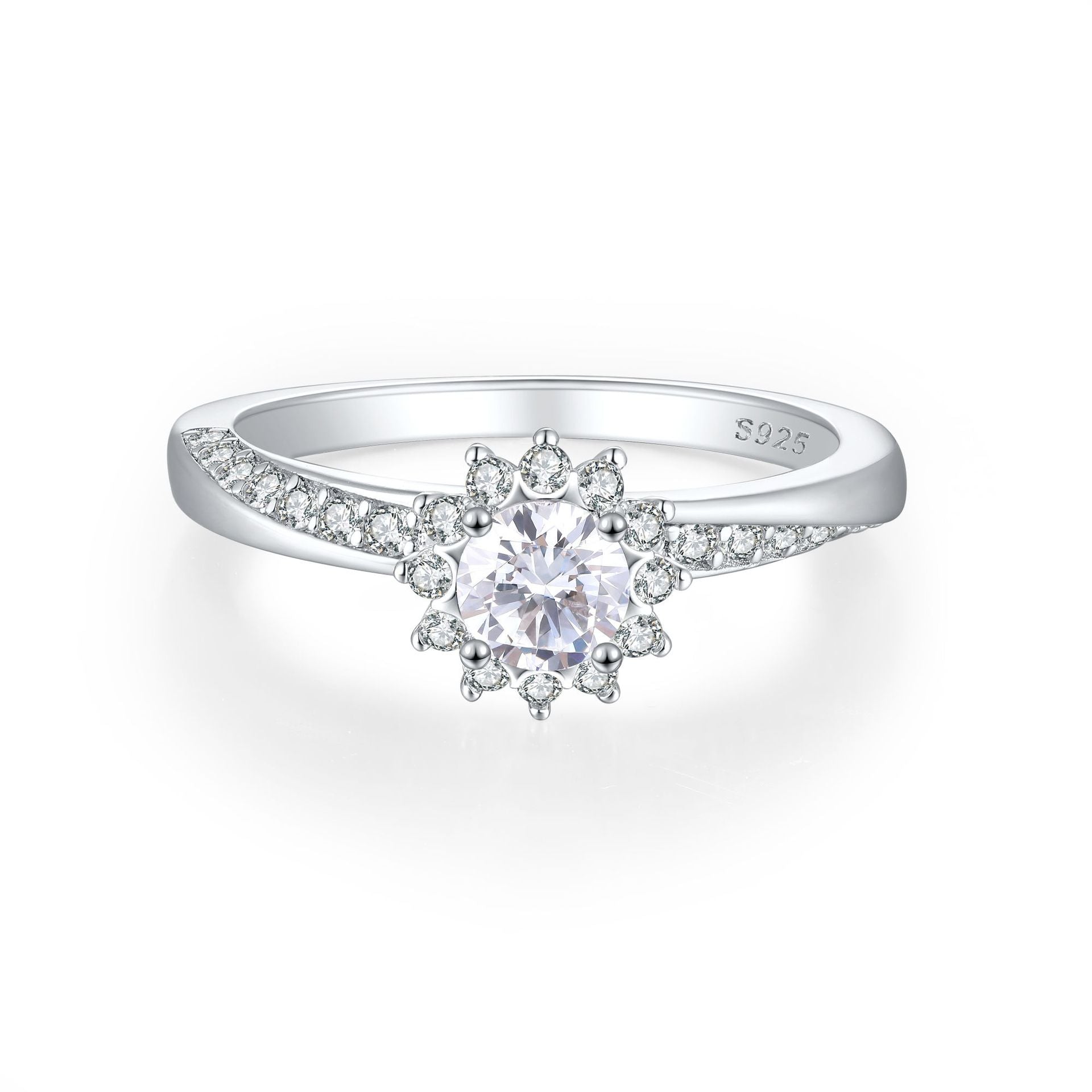 Planderful Sterling Silver Flower Ring 925 With Zircon Accent For Women Elegant Daily Jewelry