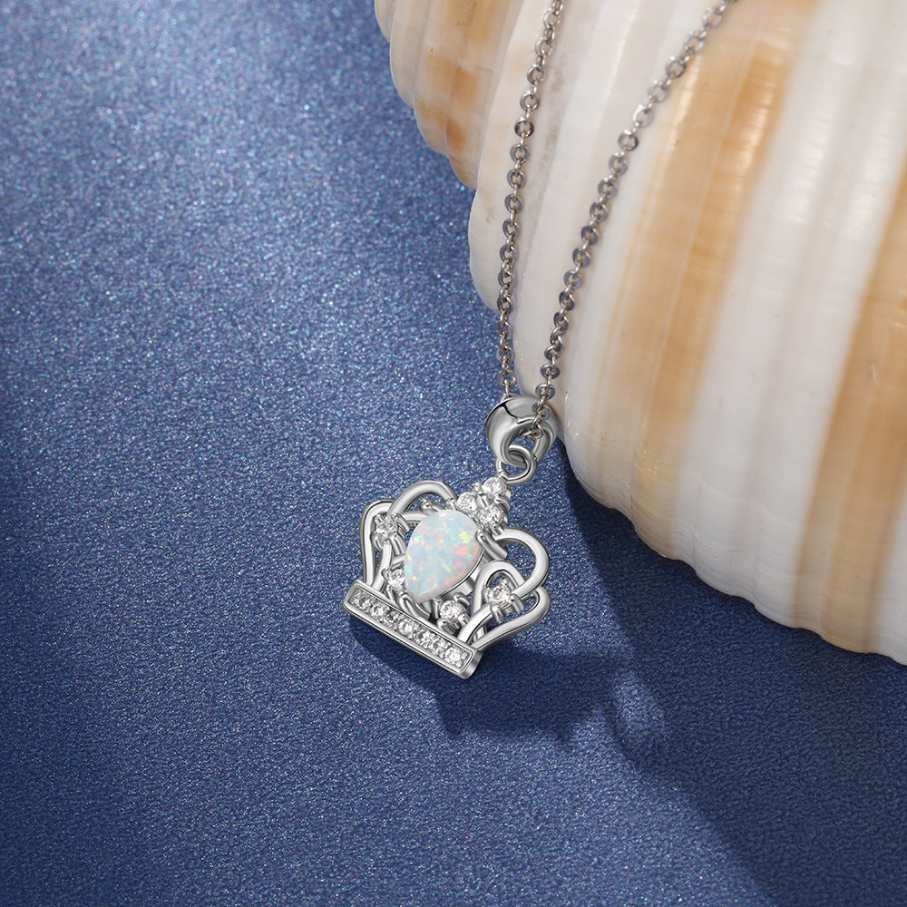 Planderful Jewelry Opal Crown Necklace S925 Sterling Silver