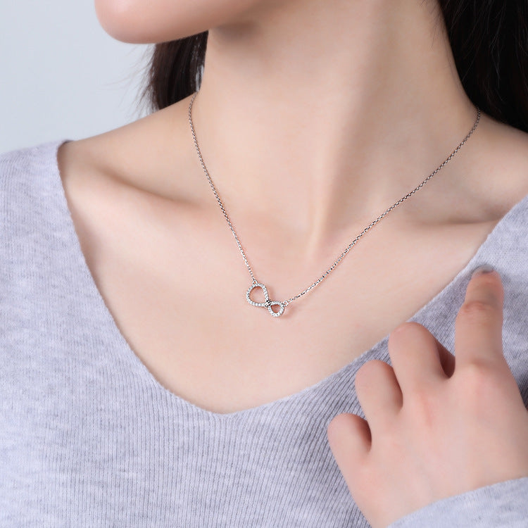 This Hollow Zircon Bowknot Silver Necklace is the perfect accessory to complete a sophisticated and stylish outfit. Crafted from sterling silver, this delicate piece features a hollow bowknot design with sparkling zircons. Wear it to add a touch of class and elegance to your look.