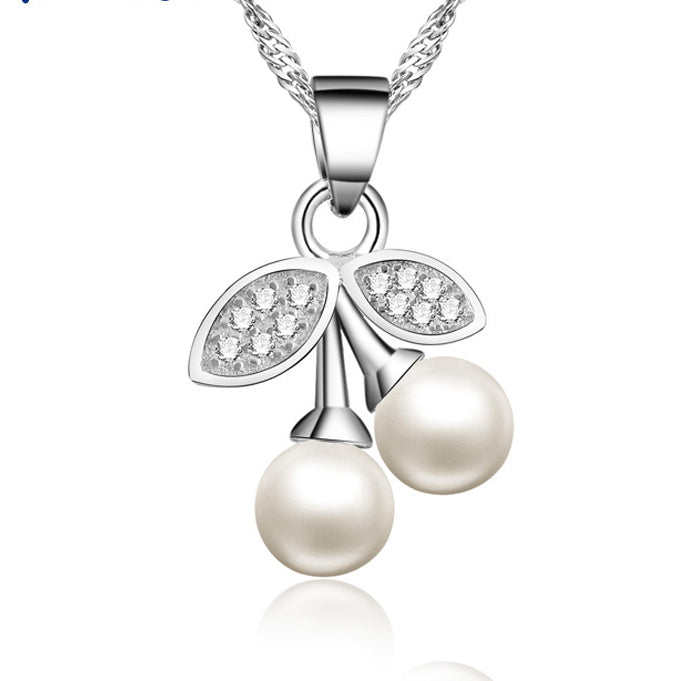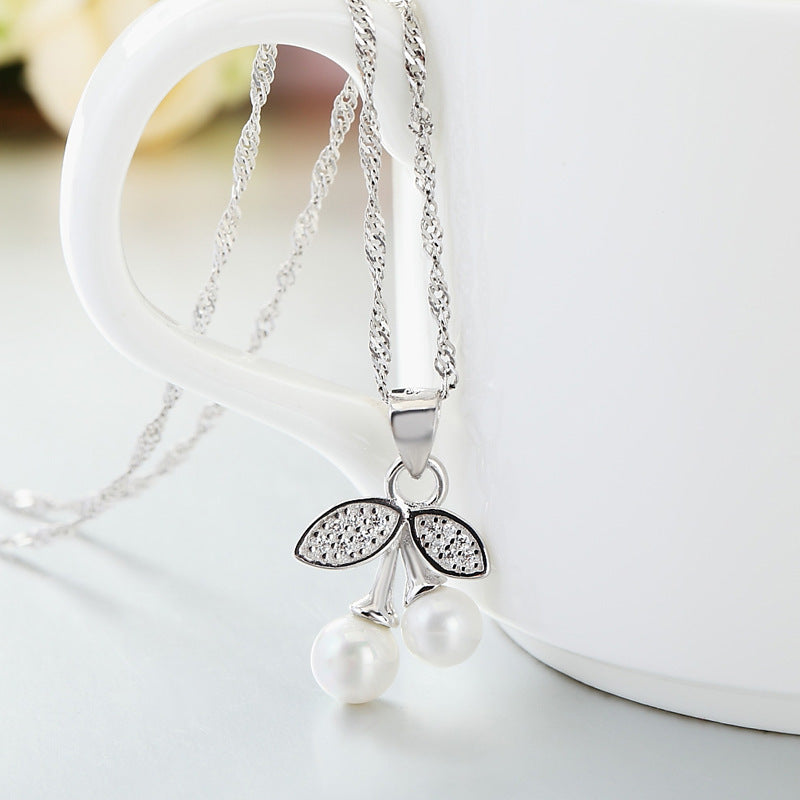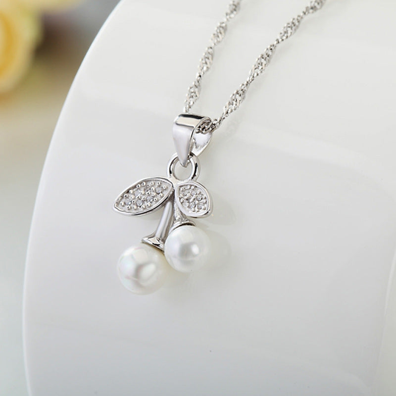 Cherry Pearl Pendant Silver Necklace for Women