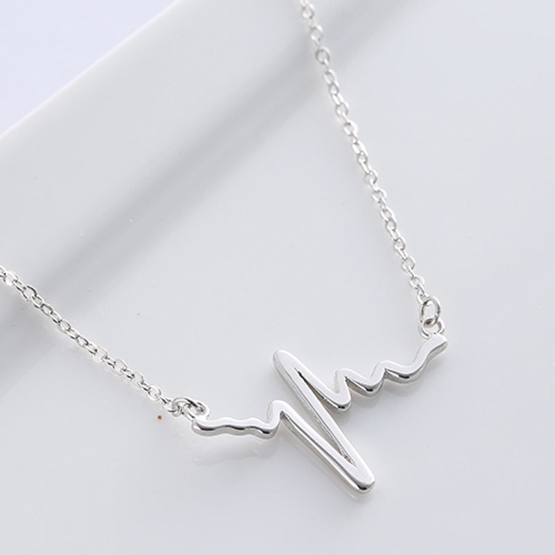 Smooth Heartbeat Pendant Silver Necklace for Women
