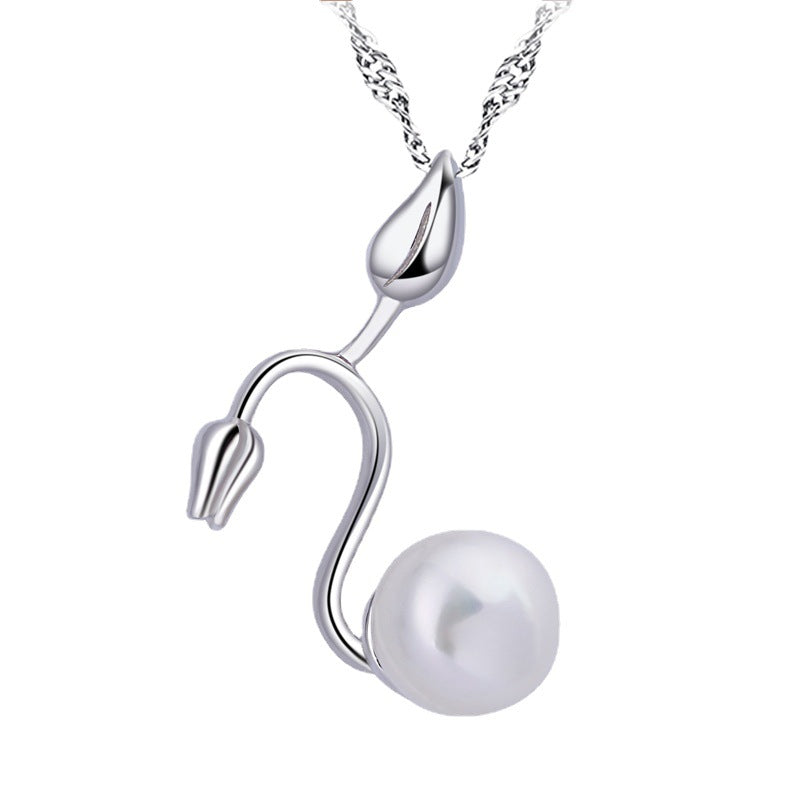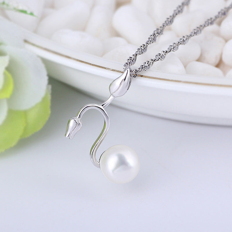 This stunning sterling silver pendant features a delicate swan-shaped petal decorated with a single pearl. Perfect for any occasion, it is sure to impress with a timeless and elegant look. Crafted from sterling silver, this pendant is sure to last and stay beautiful for many years.