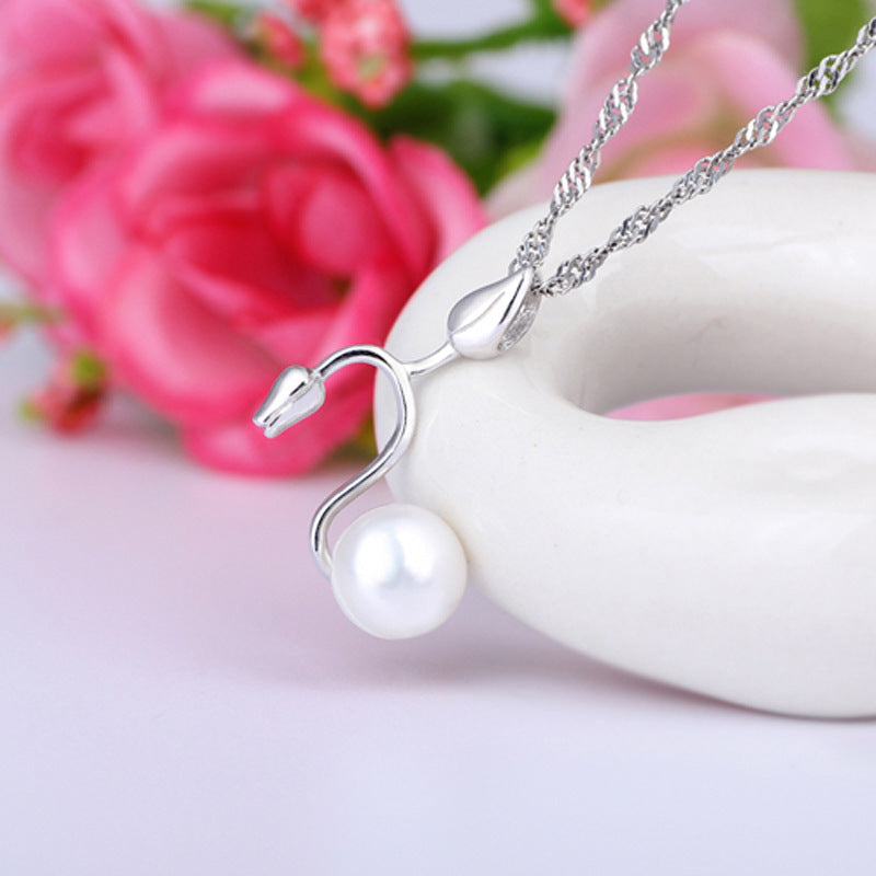 (Pendant Only) Petal with Pearl Silver Pendant for Women