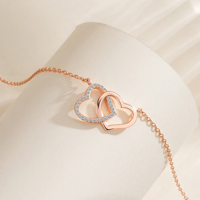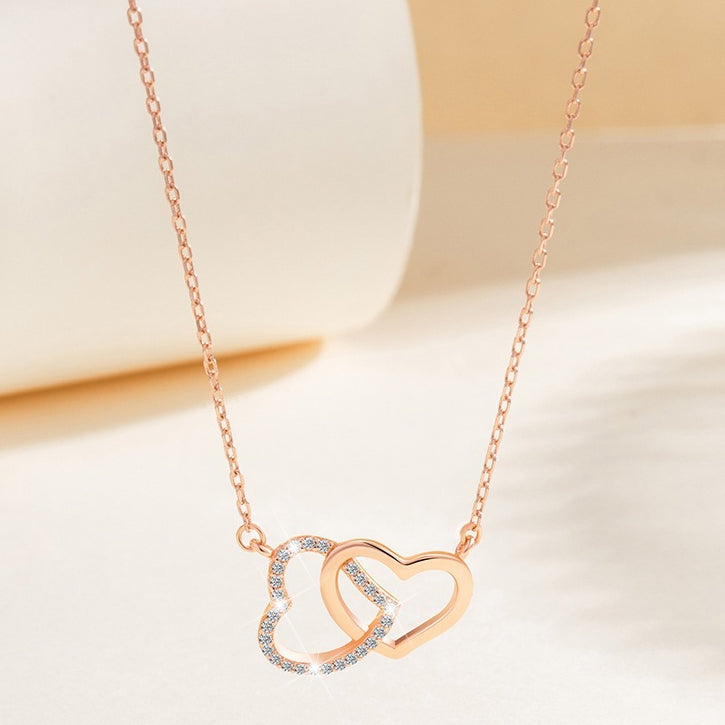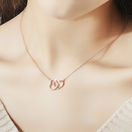 Valentine's Day Gift Two Hearts with Zircon Silver Necklace for Women