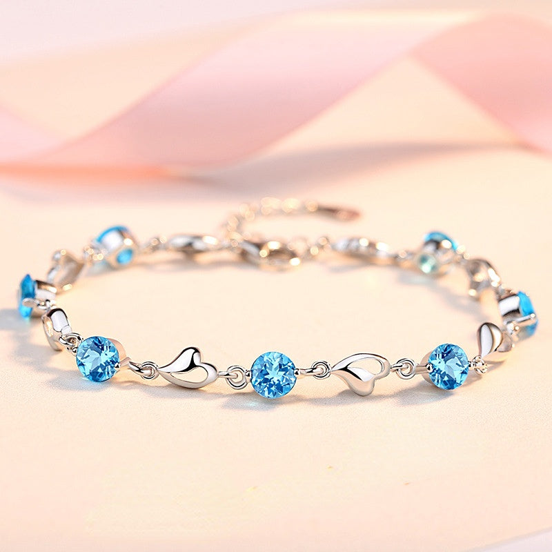 This sophisticated bracelet for women is crafted with heart-shape and colourful round zircon, creating a unique blend of elegance and class. Its sterling silver tone elegantly compliments any formal or casual outfit, making it the perfect accessory for any occasion.