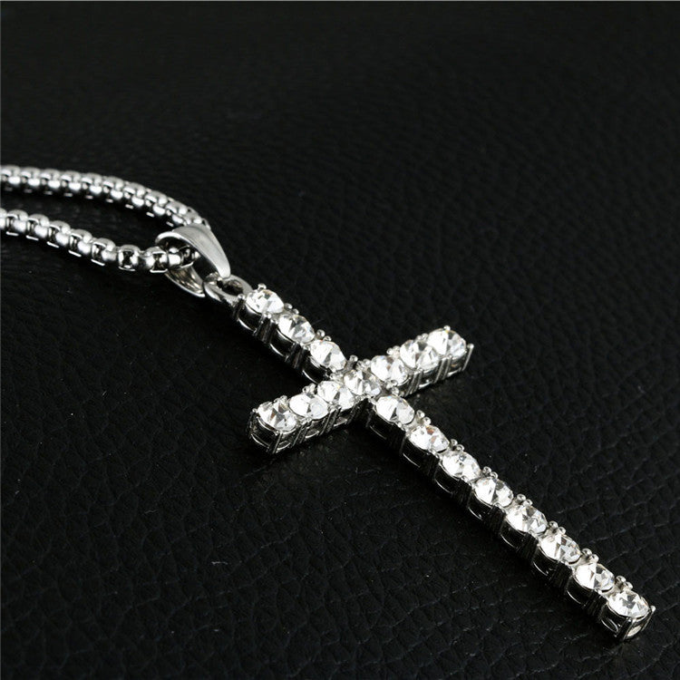 Trendy Titanium Steel Zircon Cross Pendant Necklace for Men and Women - Japan and Korea Fashion