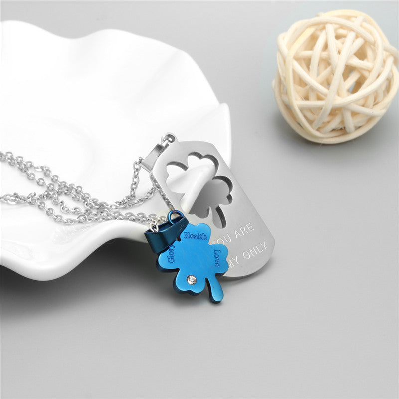 Stylish Titanium Steel Long Pendant Necklace for Couples - Four-Leaf Clover Design