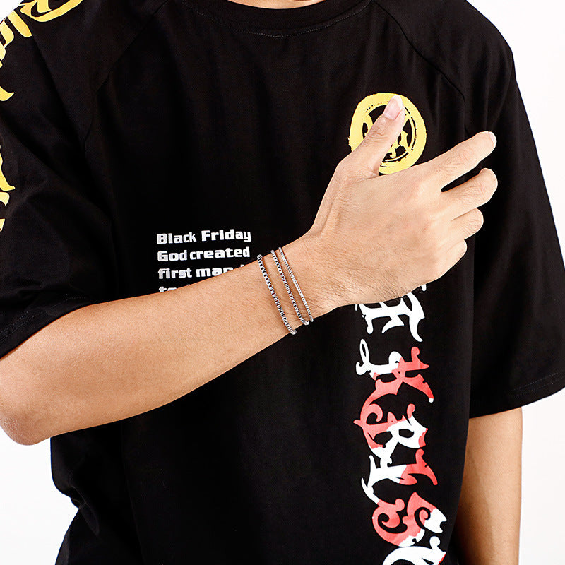 • Style & Design: Box chain bracelet with a hip-hop-inspired silhouette for a contemporary, metropolitan look