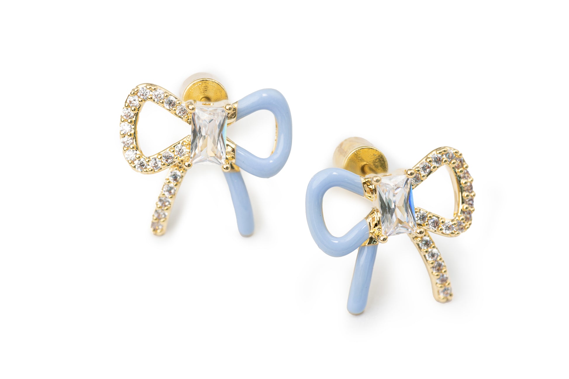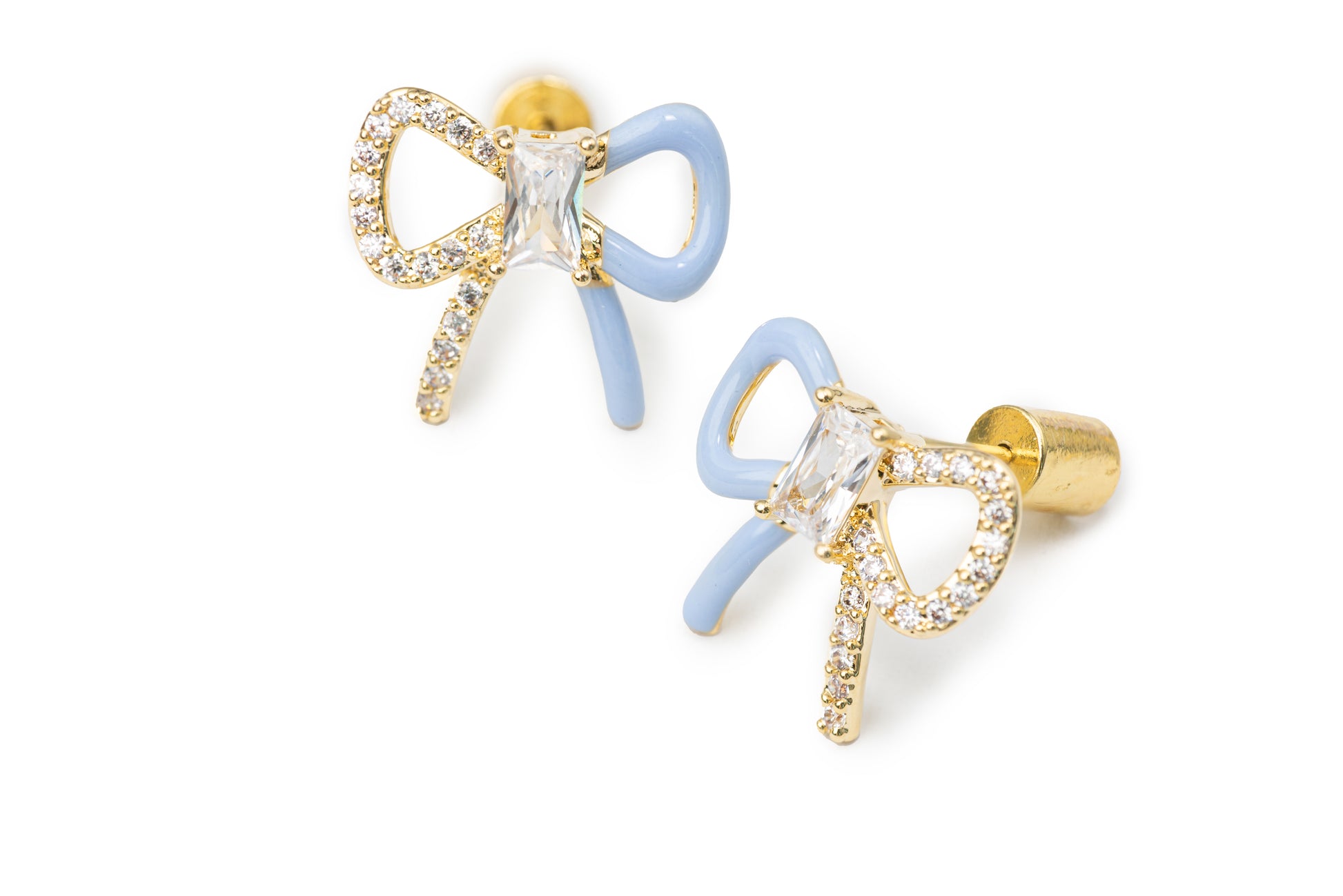 Our Ocean Blue Bi-Color Bow Studs feature a stand-out two-tone design. This stylish earrings is perfect for any occasion, from casual to formal. Showcase your unique style with an eye-catching accessory that's sure to turn heads.