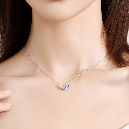 Blue Zircon Deer Pendant Silver Necklace for Women