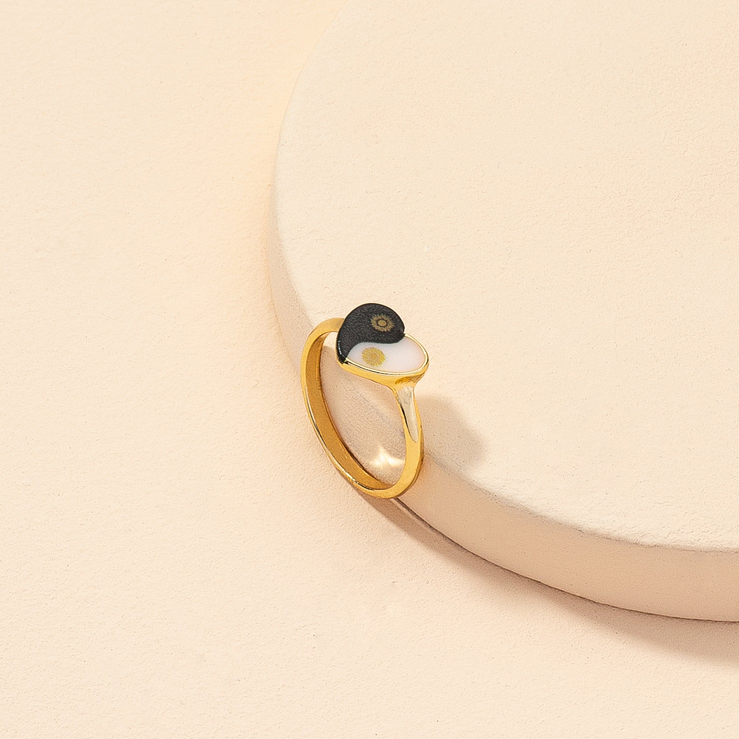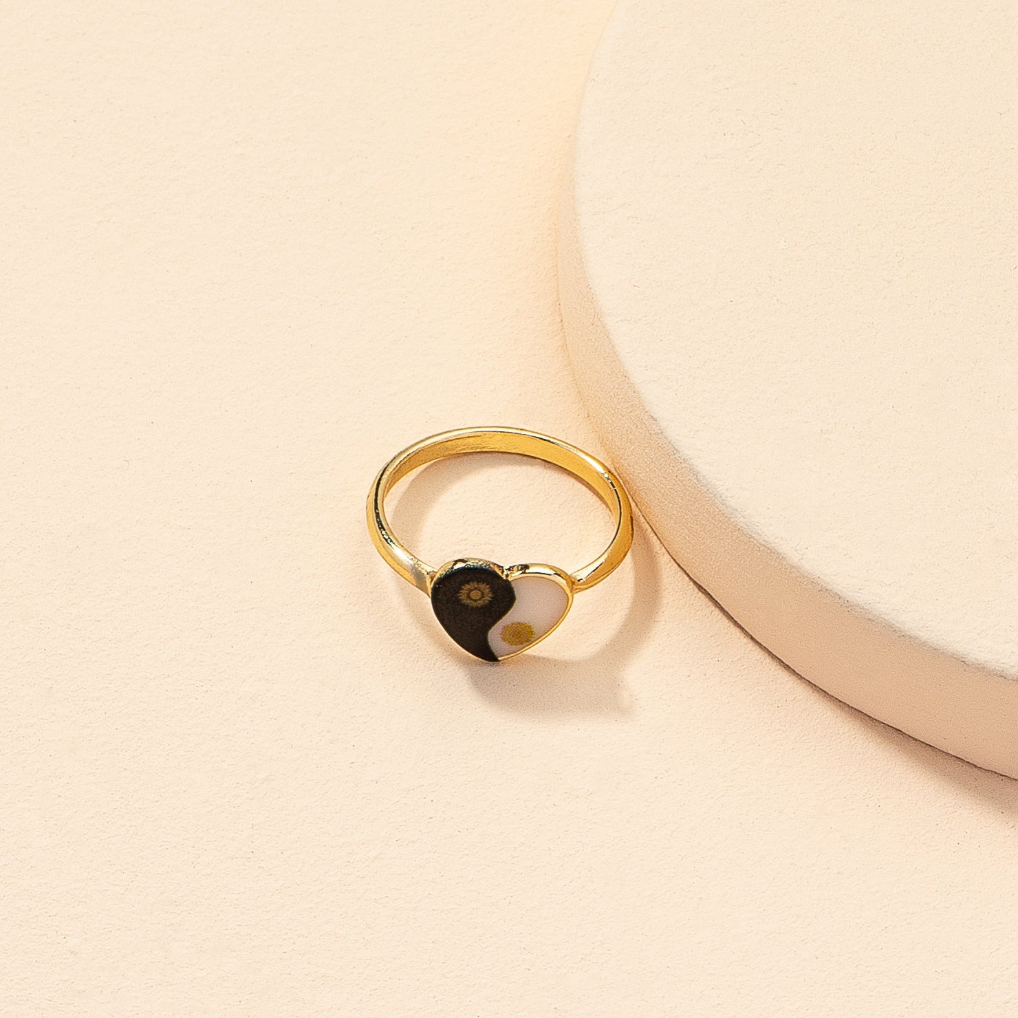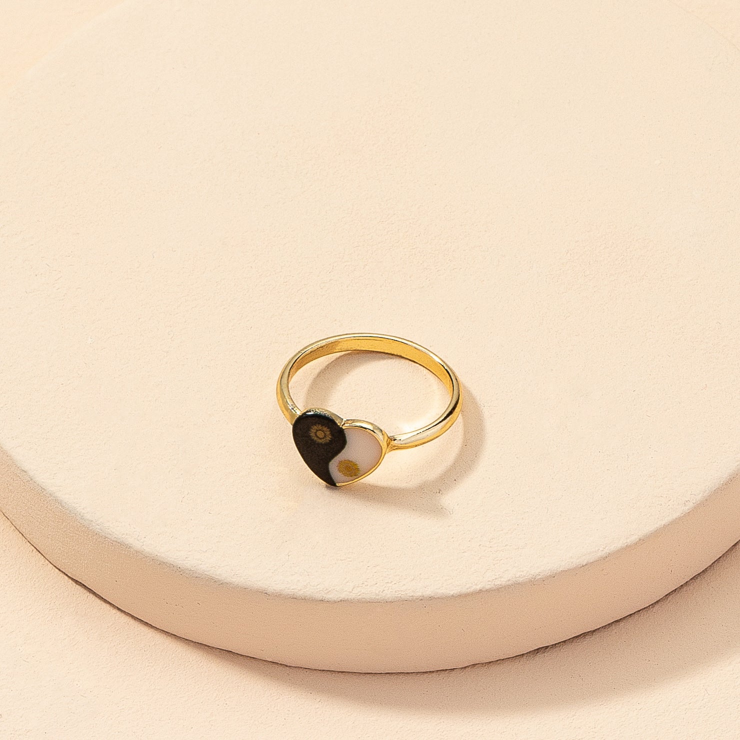 Europe & America's Favorite Heart Print Ring: Gold Geometric Cross-Border Instagram Ring for Women