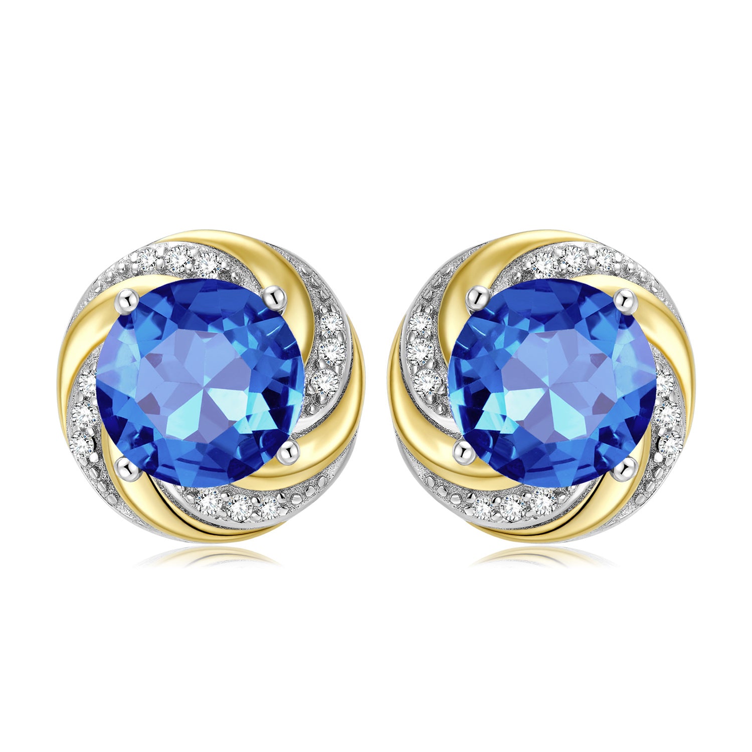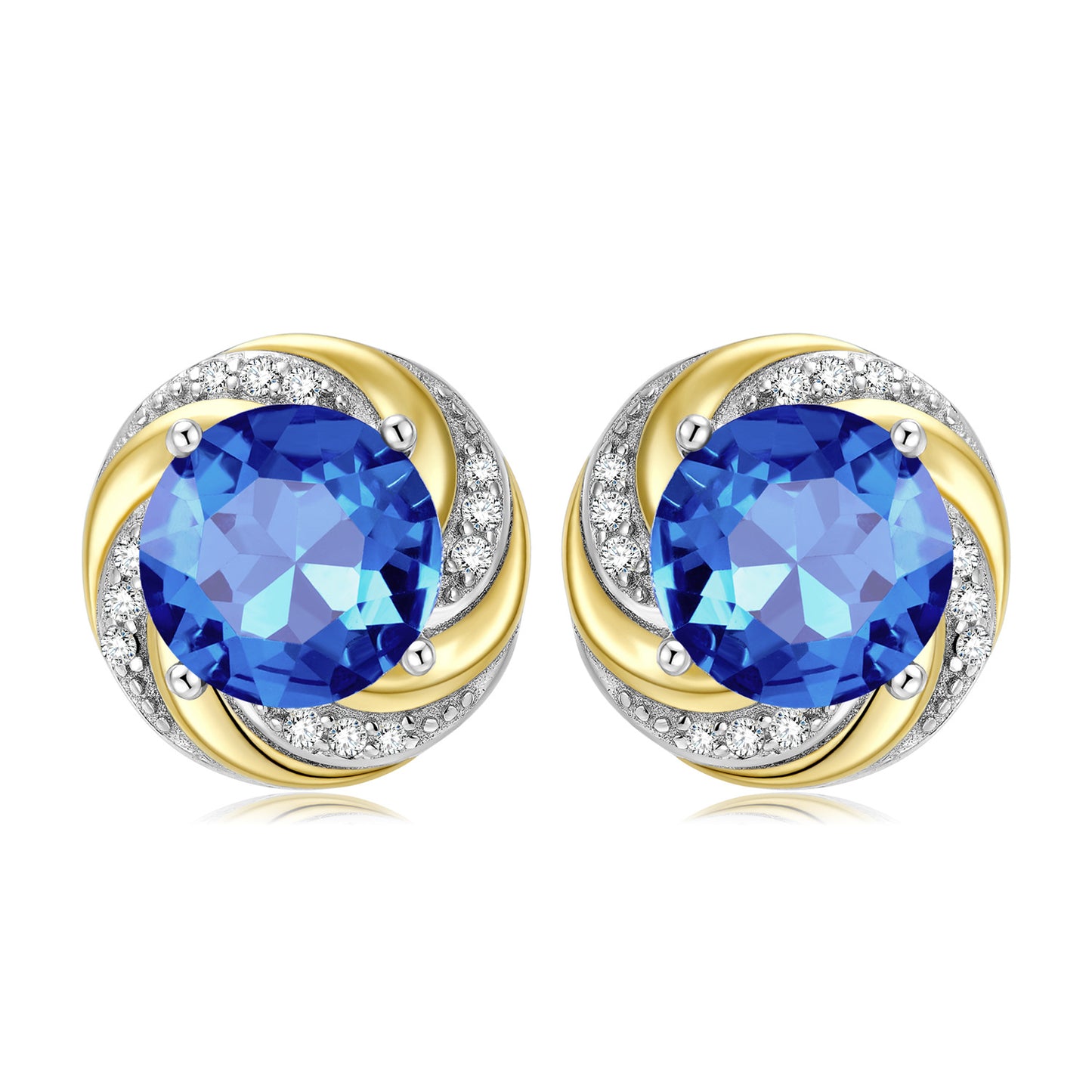 Vortex Round Shape Blue Zircon Silver Stud Earrings