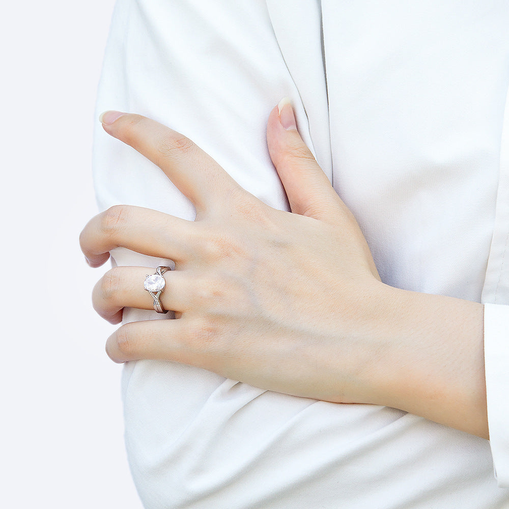 (2.0CT) Oval Zircon Modern Split Shank Silver Ring for Women