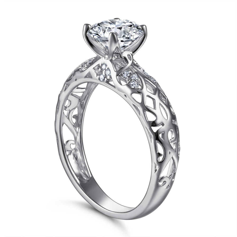 Adorn your finger with this stunning Round Zircon Hollow Pattern Silver Ring. It's crafted with a Round cut Zircon and Hollow Pattern arm adorned with tiny Zircons, making a truly eye-catching accessory. Wear it alone or layered with other rings for a bold, stylish look.