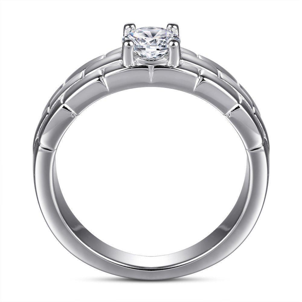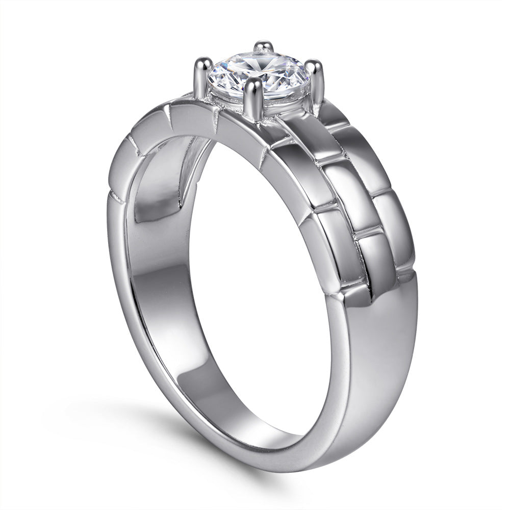 Round Zircon Watch Chain Silver Ring