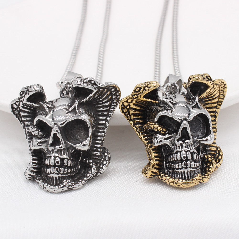 Unleash Your Bold Style with Our Retro Snake King Skull Pendant